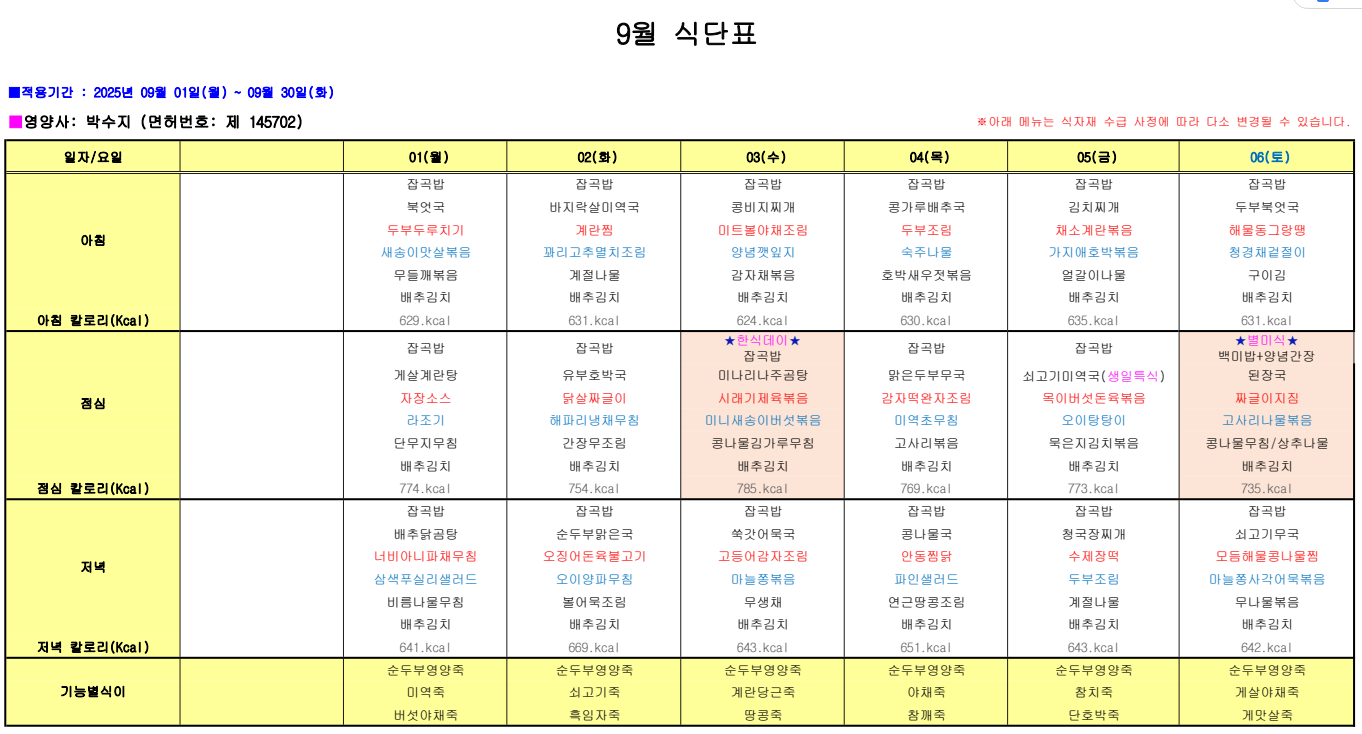 2025³â 9¿ù ½Ä´ÜÇ¥