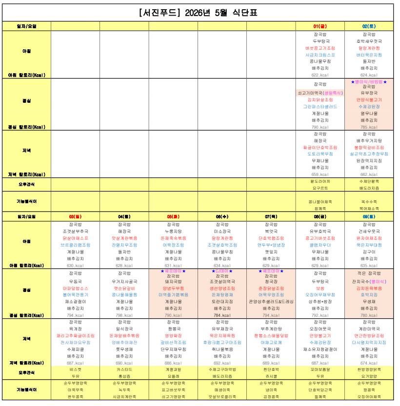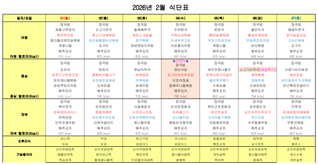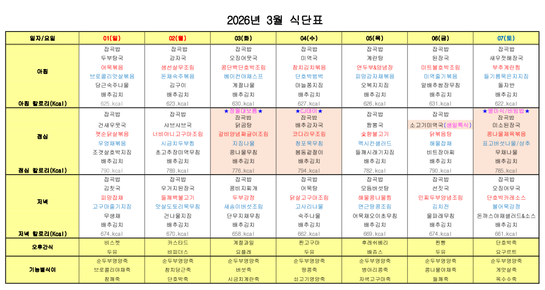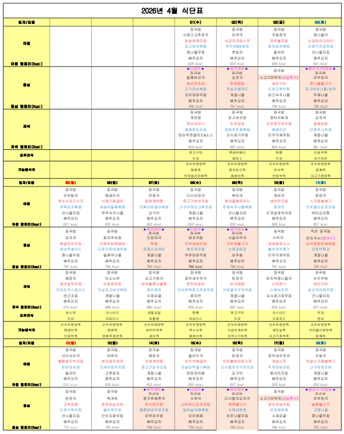 ÇØÇǶóÀÌÇÁ¿ä¾ç¿ø ¿ùº° ½Ä´ÜÇ¥ ÀÔ´Ï´Ù.