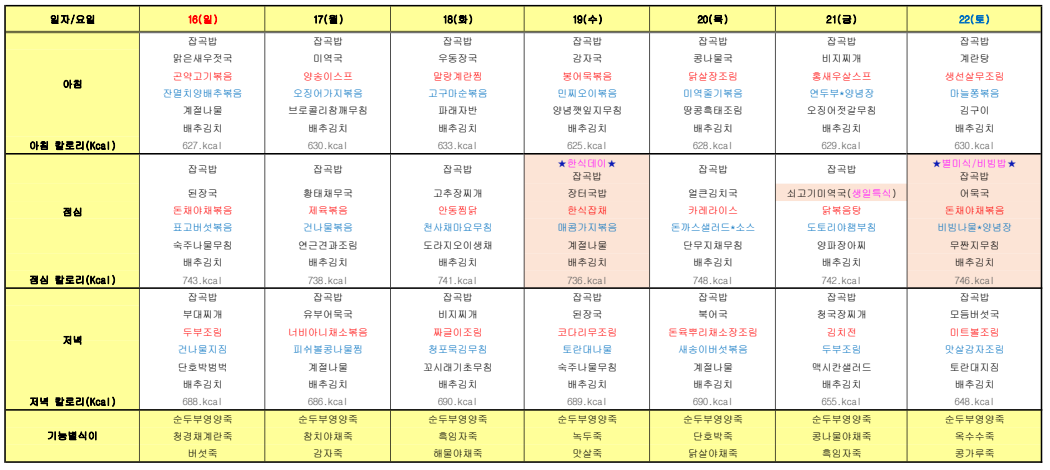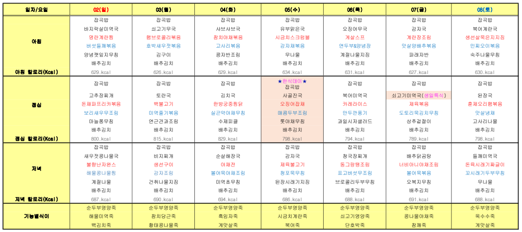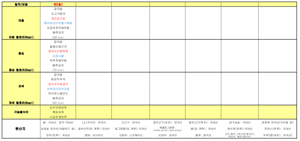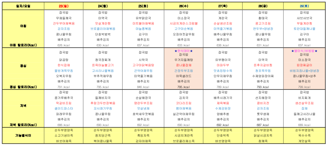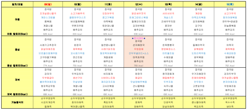 ÇØÇǶóÀÌÇÁ¿ä¾ç¿ø ¿ùº° ½Ä´ÜÇ¥ ÀÔ´Ï´Ù.