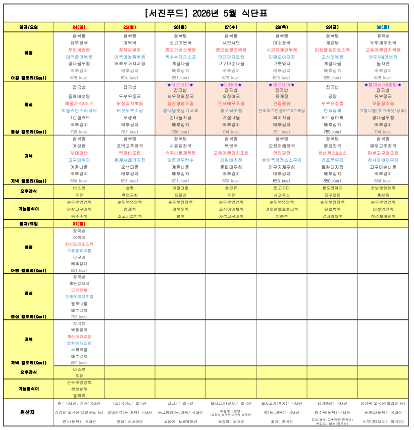 ÇØÇǶóÀÌÇÁ¿ä¾ç¿ø ¿ùº° ½Ä´ÜÇ¥ ÀÔ´Ï´Ù.